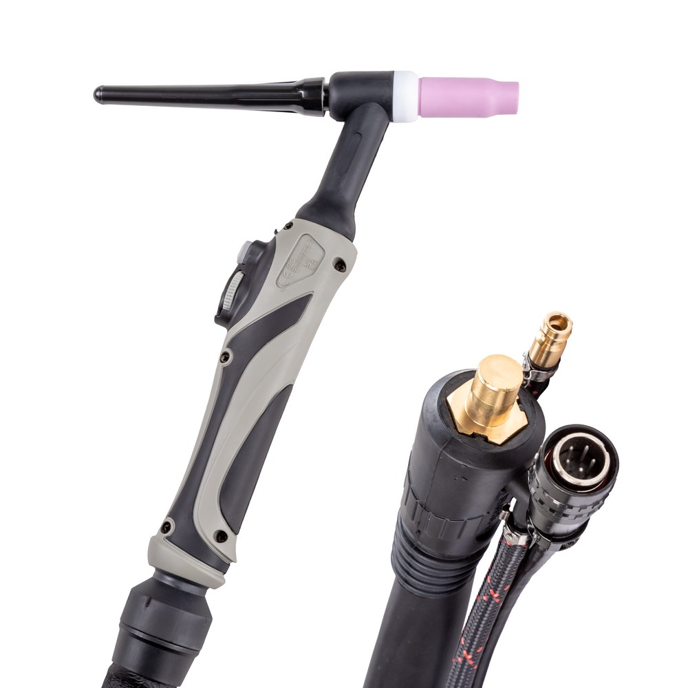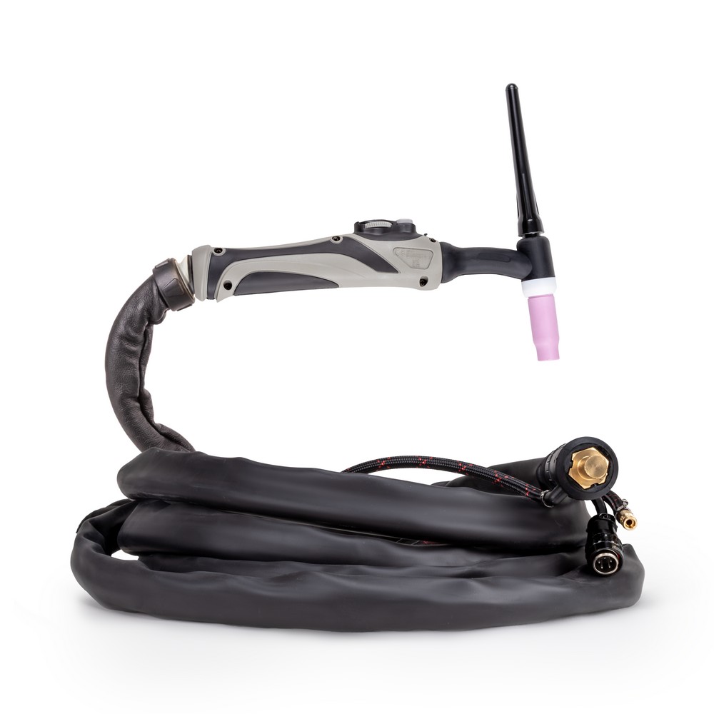 Сварочная горелка SAGGIO TIG-26 Flex предназначена для аргонодуговой сварки вольфрамовыми электродами при выполнении различных видов сварочных работ. Удобная рукоятка с кнопками управления сварочным процессом и регулировкой сварочного тока обеспечивают комфорт во время работы. Гибкая головка FLEX и шарнирное соединение с рукавом горелки снижают нагрузку на кисть и запястье сварщика. А дополнительный кабель подключения 5 pin увеличивает модельный ряд совместимых сварочных аппаратов.