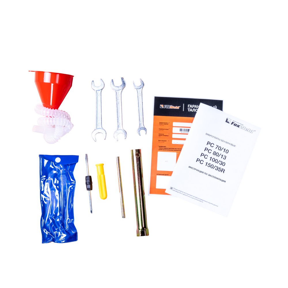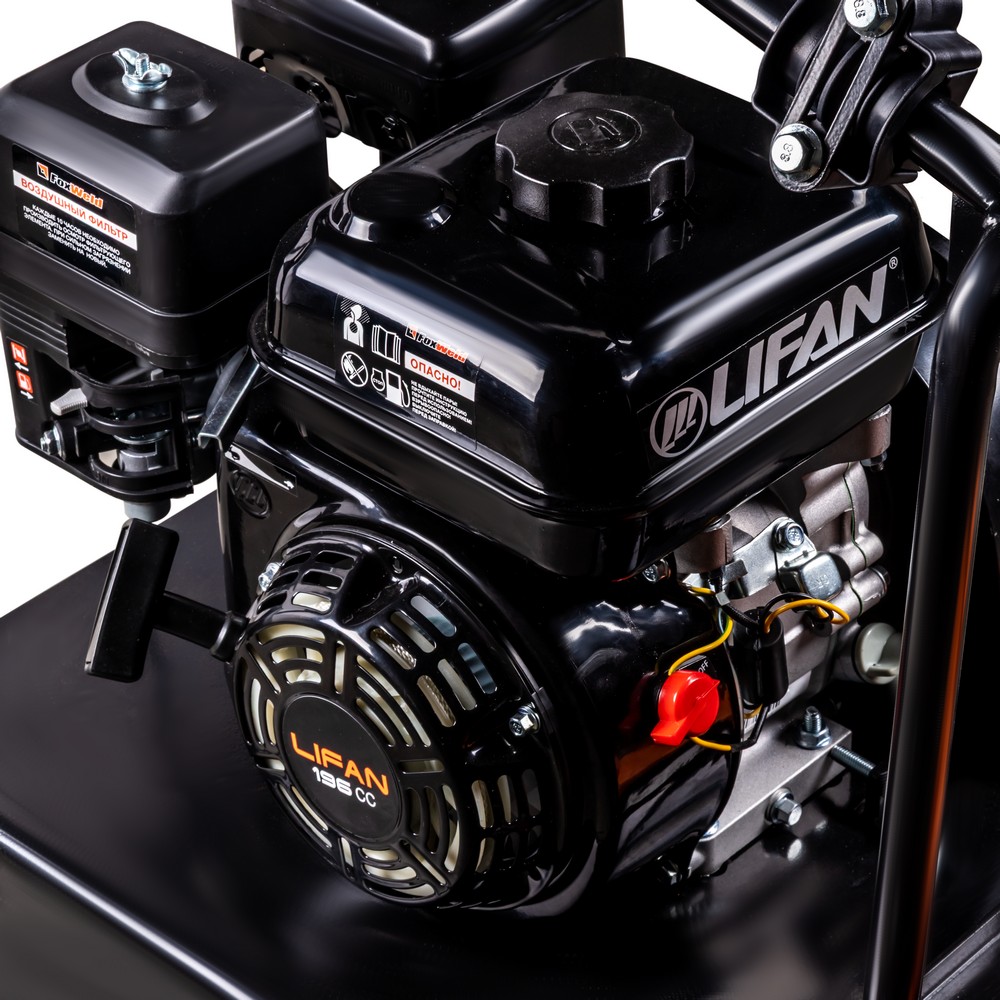Виброплита FoxWeld PC 100/30, прямоходная, двигатель Lifan 168F-2, вес 100 кг, центробежная сила 30 кН, бак с водой, транспорт. колёса